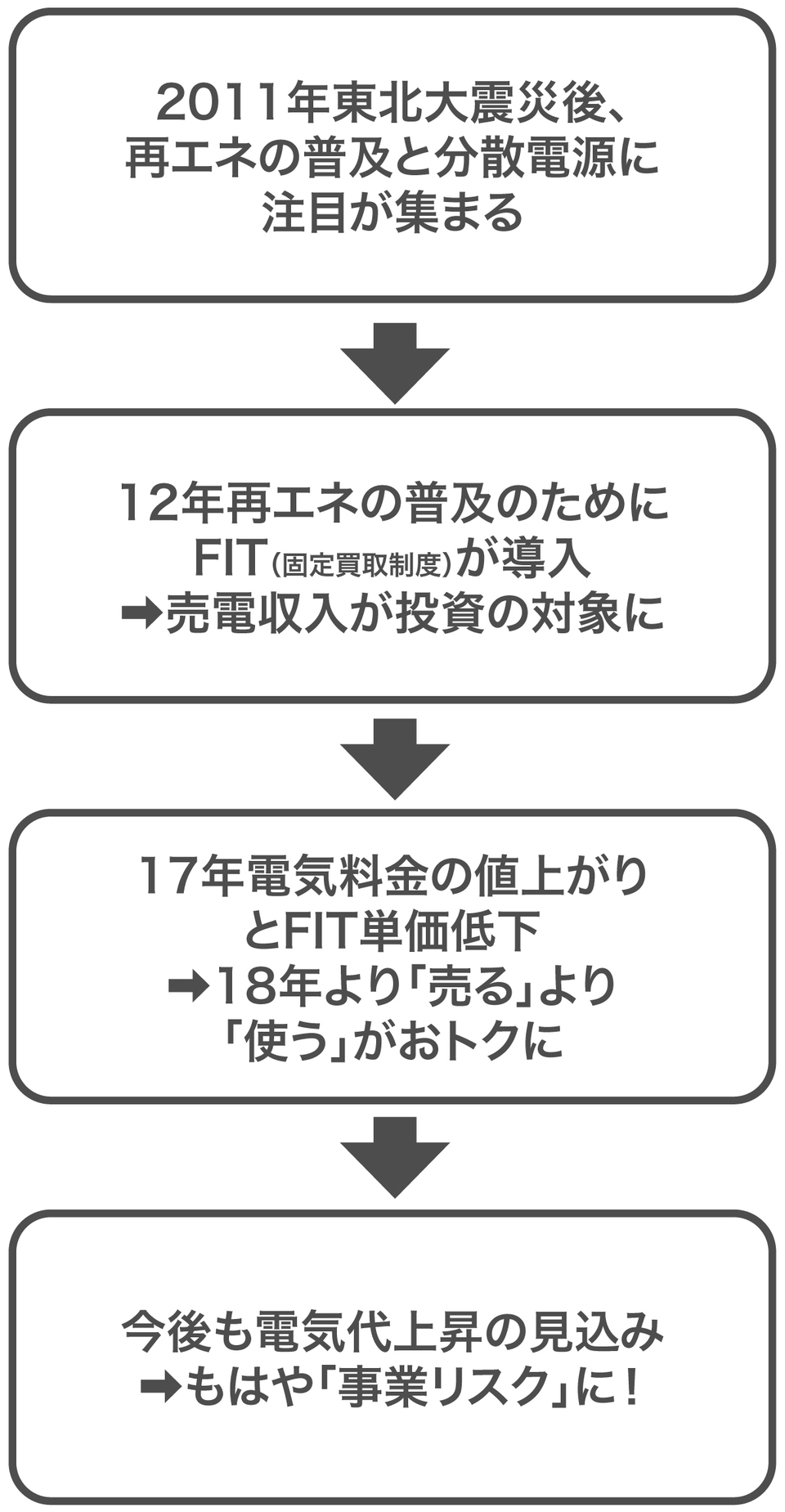 理由②:電気代の上昇が続き、太陽光発電設備を設置して自社で使う方が安価に